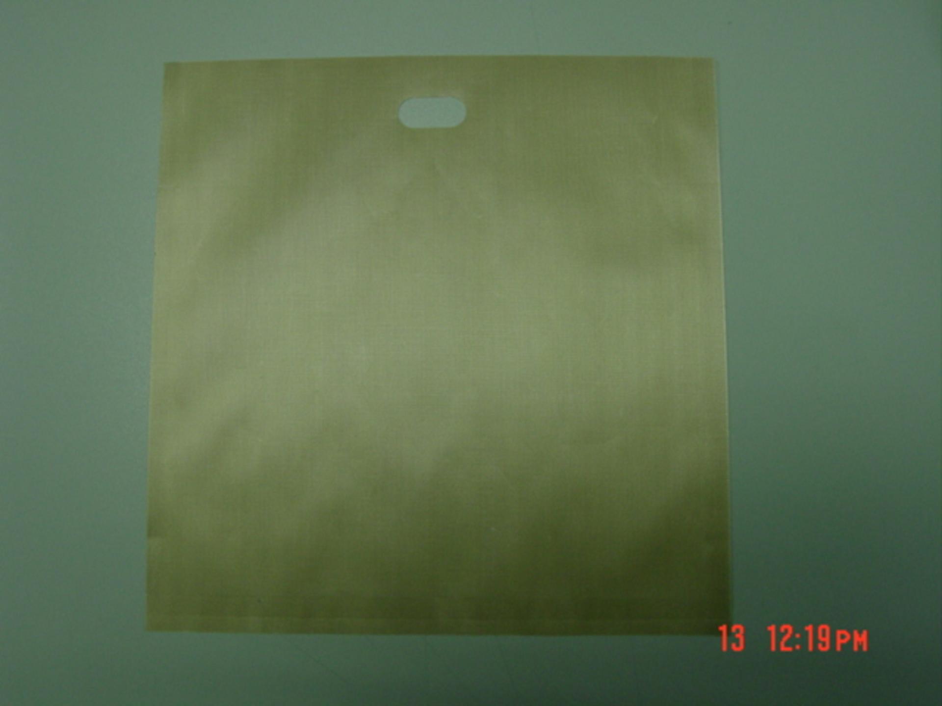 特氟龍烤面包袋是由進口玻璃纖維布作為基布,表面經(jīng)優(yōu)質(zhì)特氟龍乳液(PTFE)多次浸潤、涂層,所制成的玻纖特氟龍涂層布再經(jīng)過裁剪、壓燙而做成的。